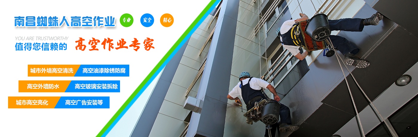 南昌蜘蛛人高空作業(yè)有限公司是一家建筑領(lǐng)域高空作業(yè)專(zhuān)業(yè)型公司,公司從事多年蜘蛛人高空業(yè)務(wù),備有大量高空操作專(zhuān)業(yè)技術(shù)人才,專(zhuān)業(yè)致力于城市外墻高空清洗、高空清障、高空安裝、高空拆卸、高空油漆除銹防腐、高空外墻防水、城市高空亮化、高空廣告安裝及高空勞務(wù)輸出等業(yè)務(wù)。服務(wù)理念:術(shù)業(yè)專(zhuān)攻、安全至上。經(jīng)營(yíng)理念:打造南昌市蜘蛛人第一團(tuán)隊(duì)......[查看詳情]